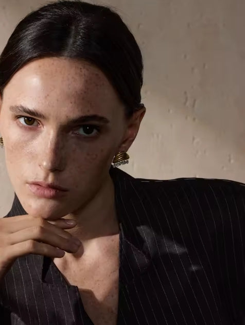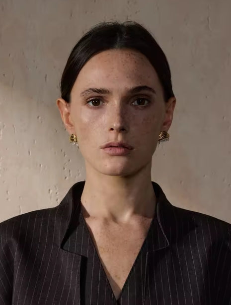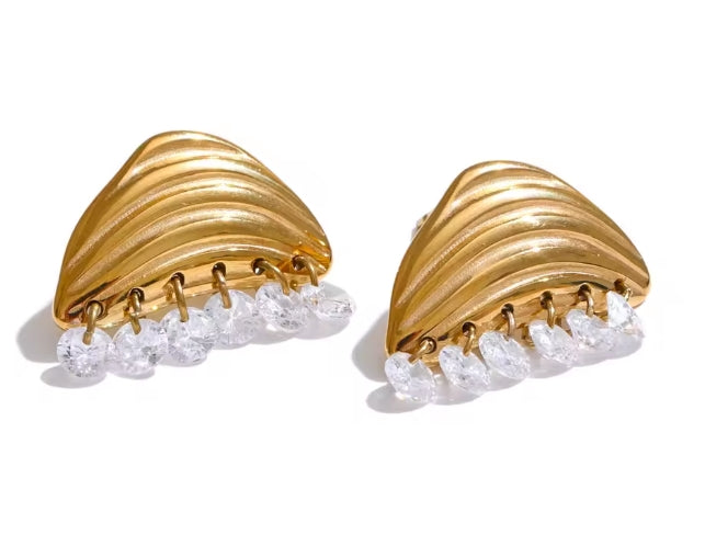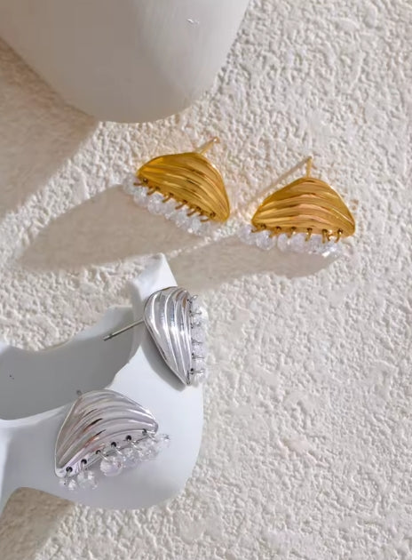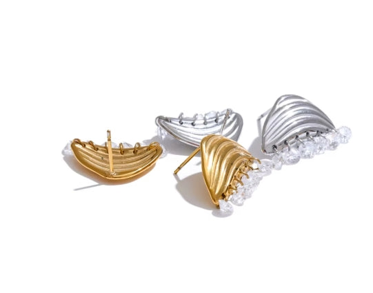 Answer 1: The earrings are made from premium stainless steel with a PVD 18K gold plating, ensuring durability and a luxurious finish.