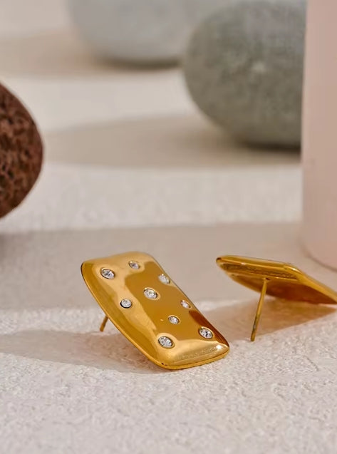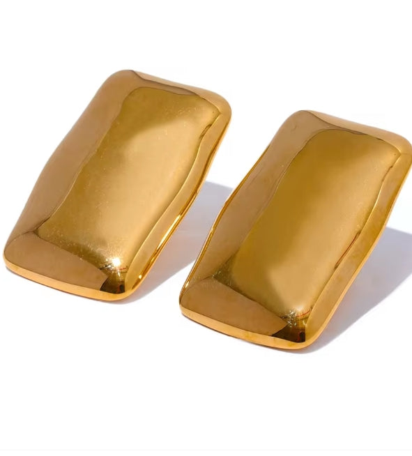 Answer 1: The earrings are made from premium stainless steel with a PVD 18K gold plating, ensuring durability and a luxurious finish.