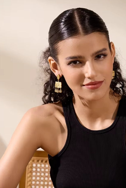 Answer 1: The earrings are made from premium stainless steel with a PVD 18K gold plating, ensuring durability and a luxurious finish.
