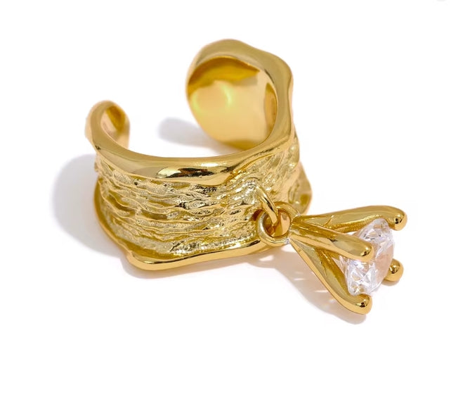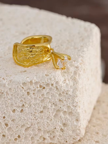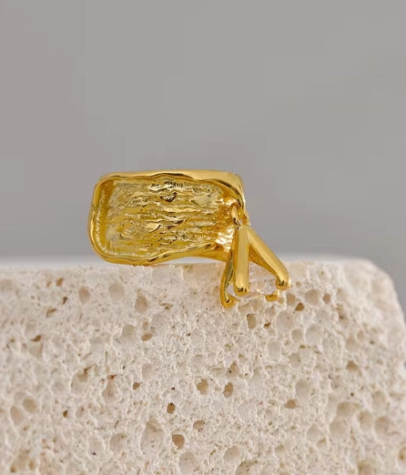 Answer 1: The earrings are made from premium stainless steel with a PVD 18K gold plating, ensuring durability and a luxurious finish.