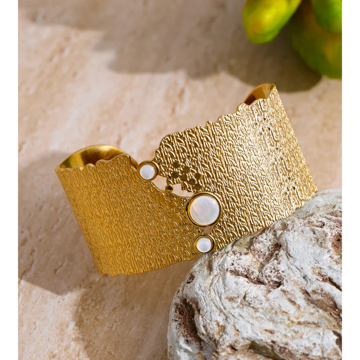 Autumn Aura Personalized Wide Shell Cuff Bracelet