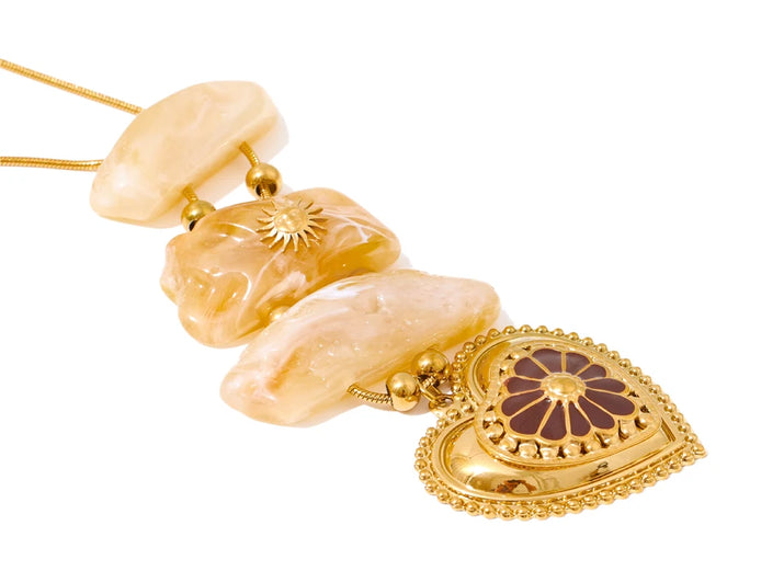 Autumn Aura Resin Rectangle Heart Pendant Necklace