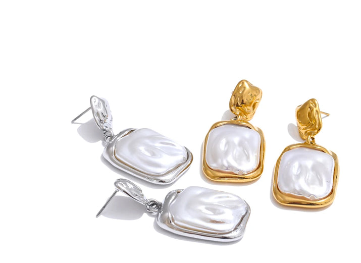 Answer 1: The earrings are made from premium stainless steel with a PVD 18K gold plating, ensuring durability and a luxurious finish.