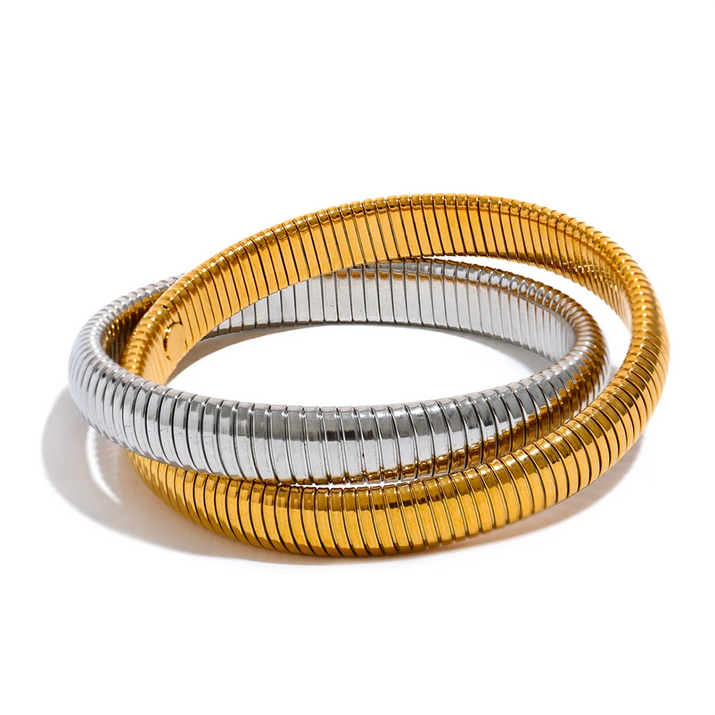 Steeletta Elastic Thick Metal Punk Bracelet – 18K Gold Plated