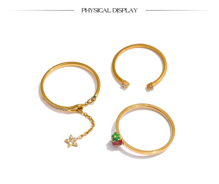Answer 1: The earrings are made from premium stainless steel with a PVD 18K gold plating, ensuring durability and a luxurious finish.