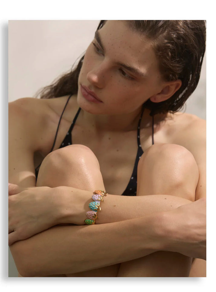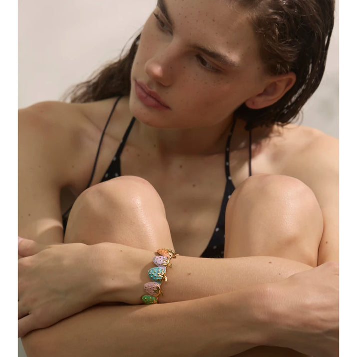 Answer 1: The earrings are made from premium stainless steel with a PVD 18K gold plating, ensuring durability and a luxurious finish.